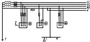 1 - рабочее (функциональное) заземление; 2 - корпус; 3 - система выравнивания потенциалов