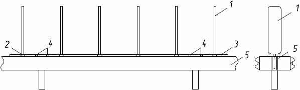 1 - полимерная пластина; 2 - держатель пластины; 3 - опорная часть; 4 - металлический крепеж; 5 - несущая опора