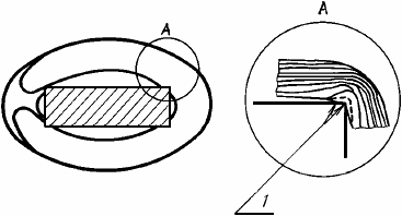 Электрическое соединение между проводом и выводом с острыми ребрами, при котором провод накручивается с контролируемым механическим усилием непосредственно на вывод, при этом витки провода врезаются и за счет врезания или вдавливания зацепляются за ребра вывода, образуя газонепроницаемый участок (черт.1):