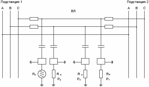 Переходное затухание между ВЧ трактами, организованными по одной и той же ВЛ (рис.0.2), определяемое как (обозначения см. рис.0.2):