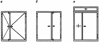 Примечание - В двупольном дверном блоке правое или левое открывание определяют по расположению полотна, которое открывается первым (рисунок А.1).
