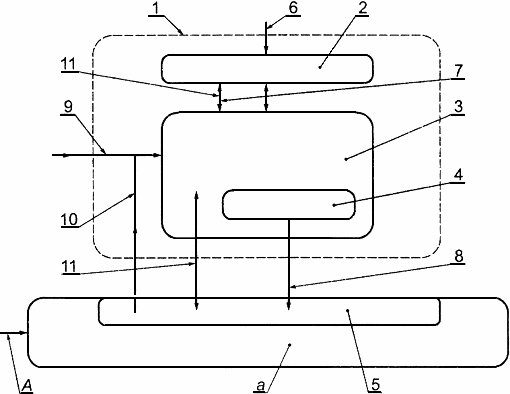 1 - обработка выходного сигнала коврика или пола, реагирующего на давление; 6 - воздействующая сила; 7 - выход датчика; 8 - сигнал замкнутого/разомкнутого состояния; 9 - сигнал ручного восстановления (при необходимости вместо А); 10 - сигнал восстановления от системы управления машиной (при необходимости); 11 - контрольные сигналы (необязательные); - сигнал ручного восстановления для системы управления машиной (при необходимости вместо 9);