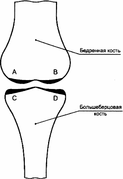 Рисунок 1 - Коленный сустав человека с позициями, в которых могут быть использованы мыщелковые эндопротезы