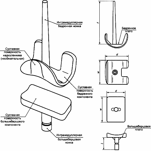 Максимальный размер бедренного или большеберцового компонентов в переднезаднем направлении при полностью разогнутом суставе (см. рисунки 2-5, размер ).