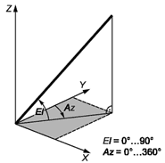 Угол, измеренный между положительным направлением оси и проекцией пера на плоскость