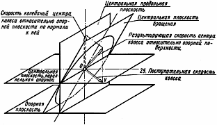 Скорость центра колеса, вектор которой лежит в центральной плоскости колеса, параллельной опорной