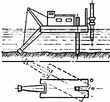 Свая земснаряда, относительно которой осуществляются его рабочие перемещения - папильонирование и подача