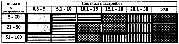 Определяется положением территории в структуре города в соответствии со схемами улично-дорожной сети и системы общегородских центров, разработанных в составе Генерального плана. Интенсивность использования территории города характеризуется показателями плотности застройки, процентом застроенности территории (табл.1)  и  плотностью улично-дорожной сети, выраженной нормативным размером квартала. Распределение интенсивности застройки по территории города приводится в табл. 2.