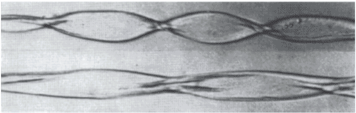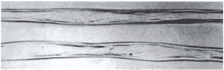 Волокна, которые после набухания либо принимают спиралевидную форму (рисунок 7) либо остаются плоскими, имеют слабые очертания и в основном прозрачны (рисунок 8). Волокна имеют толщину стенки менее чем одна четвертая максимальной ширины волокна.
