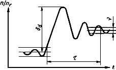 Наибольшее отклонение относительной мгновенной частоты вращения в переходном процессе регулирования от относительной частоты вращения предшествовавшего установившегося режима (см. черт.3)