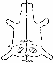 Передняя часть конской шкуры, от которой отделен хаз (см. черт.2, линия аб)