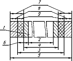 1 - деталь; 2 - размер детали; 3 - номинальный размер поковки; 4 - наименьший предельный размер поковки; 5 - наибольший предельный размер поковки; 6 - величина припуска; 7 - допуск (поле допуска); 8 - положительная величина допускаемого отклонения; 9 - отрицательная величина допускаемого отклонения