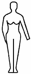 Стандартная пиктограмма, на которой двумя дугами указано положение груди для обозначения контрольного значения обхвата под грудью.