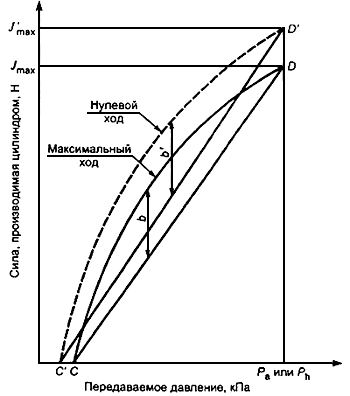 Рисунок 2 - Сила, создаваемая цилиндром, как функция давления, переданного на соединительную головку