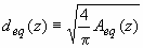 Диаметр акустического пучка на расстоянии , выраженный через эквивалентную ОБЛАСТЬ ПУЧКА, определяется по формуле