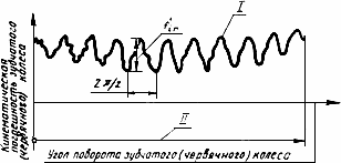 I - кривая кинематической погрешности зубчатого колеса; II - один оборот зубчатого колеса.