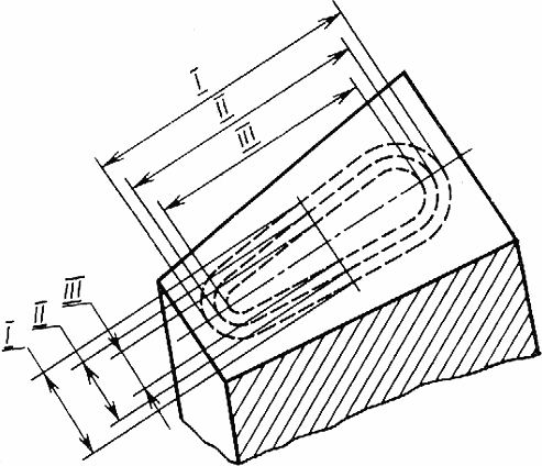 I - наибольший предельный размер пятна контакта; II - номинальный размер пятна контакта; III - наименьший предельный размер пятна контакта