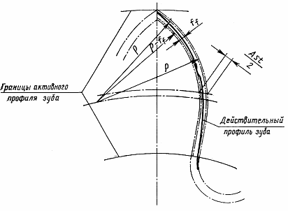 Расстояние по нормали между двумя профилями, номинальным и ближайшим к нему эквидистантным, между которыми размещается действительный активный профиль зуба (см. чертеж).