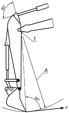 Радиус дуги, которая проходит через режущую кромку ковша и центр которой является центром шарнира рукояти (см. рисунок 5).