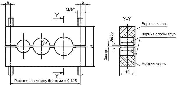 Колодка для трубопроводов, состоящая из двух моноблочных деталей (см. рисунок 1).