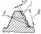 I - действительный активный профиль витка; II - номинальный профиль витка;