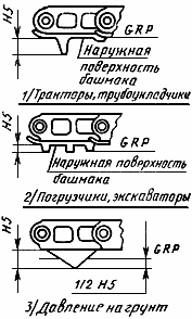 , одна из которых проходит через наружную поверхность башмака гусеницы, другая - через вершину грунтозацепа.