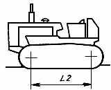 Расстояние по координате между двумя плоскостями , проходящими через оси ведущего и направляющего колес гусеничной машины