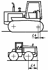 для гусеничных машин - через ось ведущего колеса и заднюю монтажную поверхность машины;