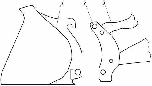 Оснастка фронтальной части колесного погрузчика, состоящая из стрелы и рычажного механизма привода ковша (см. рисунок 1).