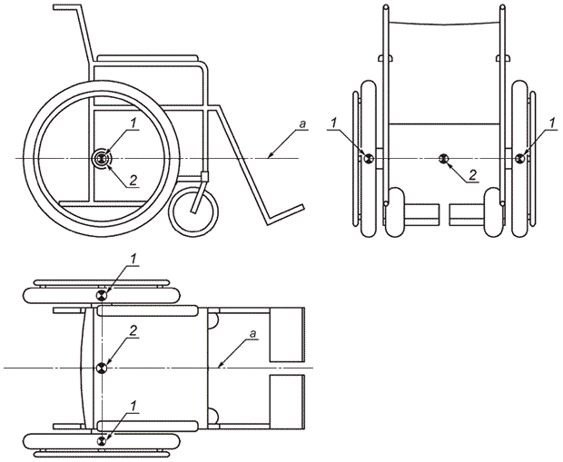 1 - центр фиксированного колеса; 2 - центральная точка кресла-коляски