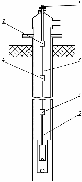 1 - устьевой шток; 2 - муфта устьевого штока; 3 - штанга; 4 - соединительная муфта; 5 - переводная муфта; 6 - утяжеленная штанга