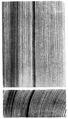 Крень в виде узких дугообразных участков или полос, захватывающих один или несколько годичных слоев (черт.21).