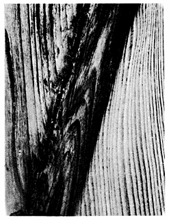 Примечание. Наблюдается на боковой поверхности круглых лесоматериалов в виде сильно вытянутого овала, у которого один диаметр превышает другой более чем в 4 раза, в пилопродукции или деталях - в виде такого же овала или полосы