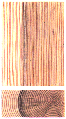 Грибные ядровые пятна и полосы (сосна)