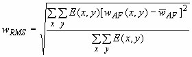 Корень квадратный взвешенной по распределению мощности (энергии) разности локальных значений функции аберраций волнового фронта и ее среднего значения.