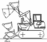 Максимальный угол, образуемый самым длинным плоским участком внутренней поверхности днища максимально поднятого ковша при вращении ниже горизонтали