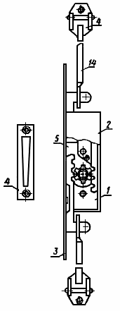 Деталь завертки, служащая для обеспечения плотного закрывания створки окна в двух точках (черт.4, поз.14)