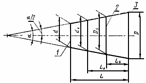 1 - малое основание; 2 - заданное поперечное сечение; 3 - большое основание