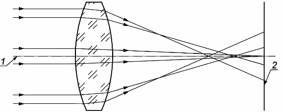 1 - оптическая ось; 2 - параксиальный фокус