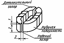 1 - глубина рабочего зазора; 2 - длина рабочего зазора; 3 - ширина рабочего зазора
