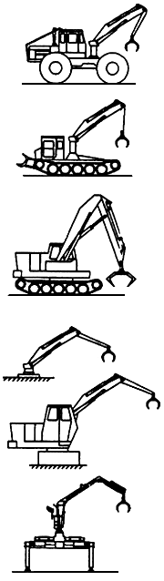 Специальные машины для подтаскивания, погрузки (выгрузки), штабелевки деревьев или их частей