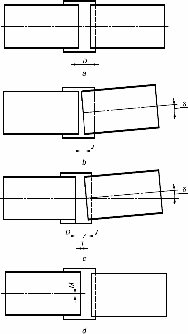 - продольное смещение, возникающее из-за углового отклонения соединения;