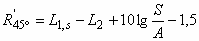 Звукоизоляция элемента здания, когда источником шума является громкоговоритель, и угол падения звука по отношению к элементу составляет 45°, рассчитываемая по формуле