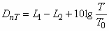 Разность средних уровней звукового давления шума в двух помещениях, созданного расположенными в одном из помещений одним или несколькими источниками шума, отнесенная ко времени реверберации приемного помещения и рассчитываемая по формуле