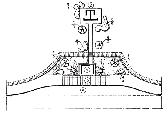 1 - автопавильон; 2 - туалет; 3 - посадочная площадка; 4 - остановочная площадка (заездной карман)