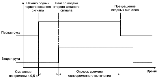 Вариант одновременного включения, когда смещение по времени между началами первого входного сигнала и второго входного сигналов составляет не более 0,5 с (см. рисунок 3).