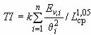 где  - средняя яркость дорожного покрытия, кд/м; - множитель, равный 950 при 5 кд/м и 650 при 5 кд/м; - вертикальная освещенность на глазу водителя от -го светильника, лк; - угол между направлением на -й светильник и линией зрения, градусы; - число светильников, попадающих в поле зрения водителя в пределах изменения угла (2°20°).