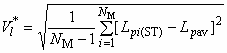 где  - эквивалентный уровень звукового давления или уровень экспозиции однократного шумового процесса с внесенной коррекцией на фоновый шум в -й точке измерения (-м месте установки микрофона) на измерительной поверхности при работающем испытуемом источнике шума, дБ;