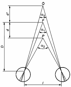 Горизонтальная диспарантность изображения в сетчатке точки фиксации , по отношению к точке