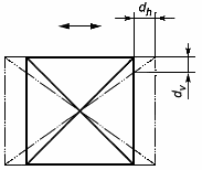 Прямоугольник, изображенный сплошной линией, представляет положение первого дисплея, а прямоугольник, изображенный штрих-пунктирной линией, представляет положение второго дисплея. Получаемое горизонтальное смещение представлено значением величины , а вертикальное смещение - .